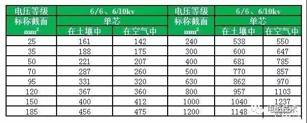 YJV、YJY、YJV22額定電壓在6/6、6/10kv電纜載流量