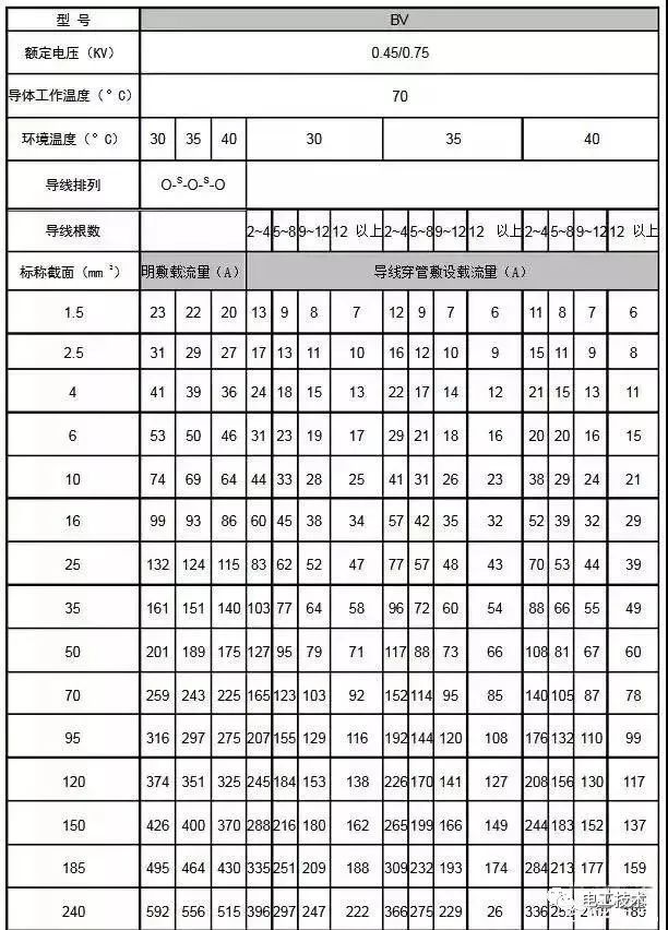 阻燃電線電纜載流量表 常見BV、BVVB、BVR、RVV、RVS系列阻燃電線電纜的載流量: