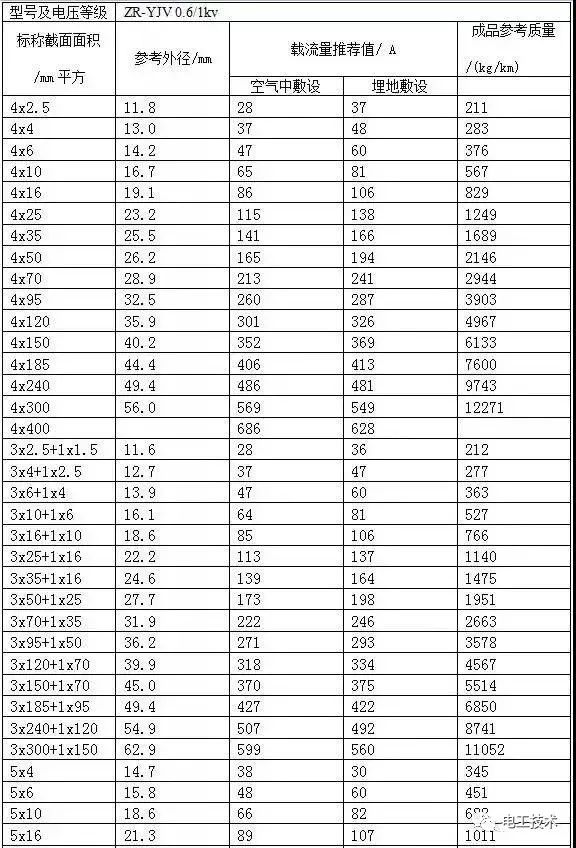 常見鋁芯電纜0.6/1kv-1.8/3kv電纜載流量表